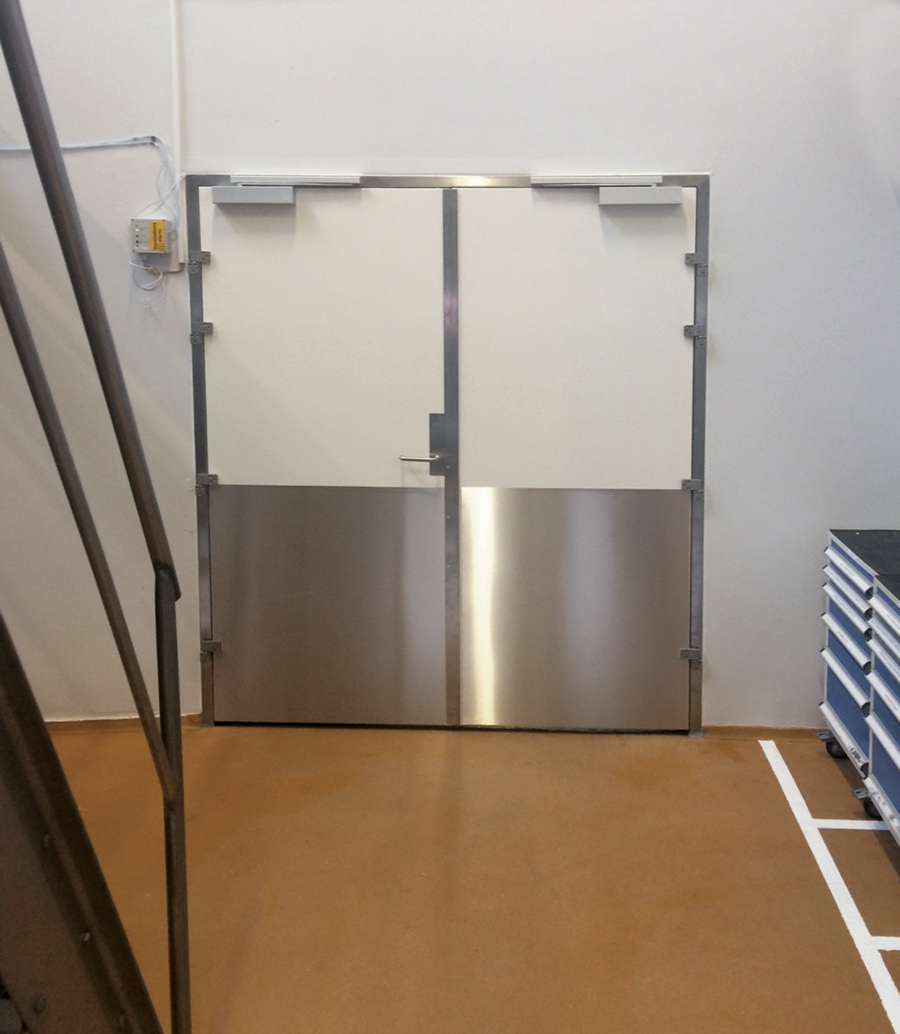 Depending on their specific function, Door System's doors are made with up to 2.0 mm stainless steel frames, which are often bolted to the floor – all of which helps to make them incredibly stable. To reinforce the doors and minimise the risk of denting, all our door leaves are available in plate thicknesses up to 1.5 mm.